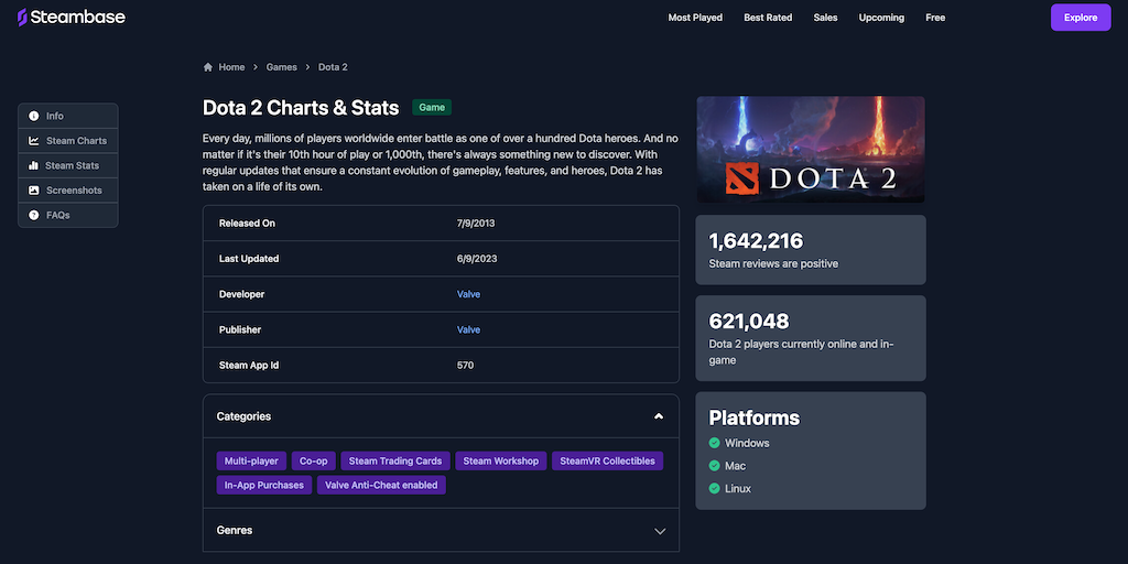 Steam base is a website which captures data from all games, packages, bundles, and much more on the Steam platform. Whether you are looking for your next game to play or find a deal, Steambase tracks