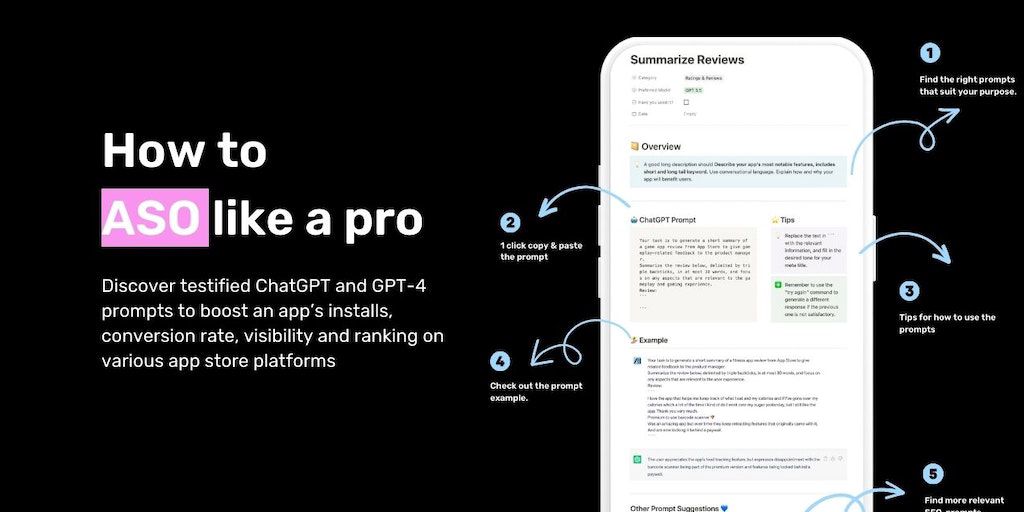 Rank Higher, Get More Downloads 🚀 Stop guessing how to optimize your app ranking. ChatGPT gives you proven ASO prompts and examples from top-ranked apps.