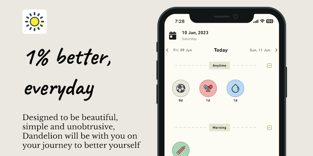 Track habits, plan your daily routine and stay motivated with Dandelion! Whether it is to achieve better health, a better work/life balance or simply finding more time for the things you love, the Dan