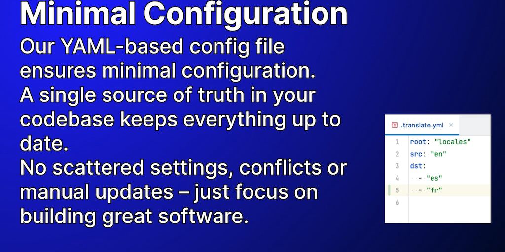 Automated Translation on GitHub. Configure your project's source language and on every pull-request LocaleBadger will create a translation pull-request for your configured target languages.