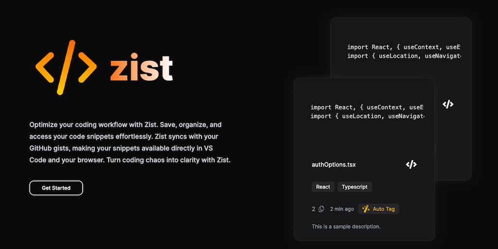 Easily organize and access your code snippets and GitHub Gists in one intuitive platform. With AI-based auto-tagging, advanced search, and a user-friendly editor, Zist turns coding chaos into streamli