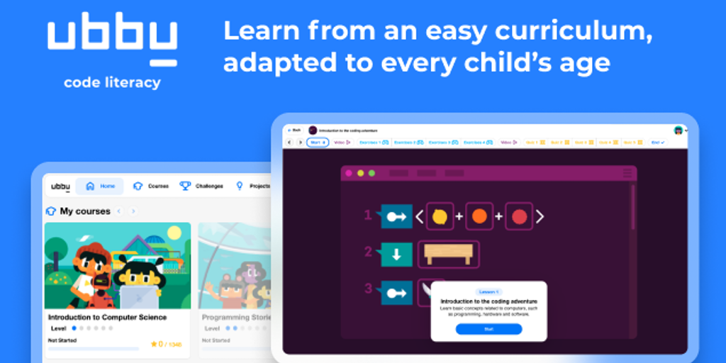 ubbu teaches children 6+ how to code in a fun and easy way. Kids learn concepts of computer science, logical thinking, and problem-solving autonomously while playing games and doing interactive exerci