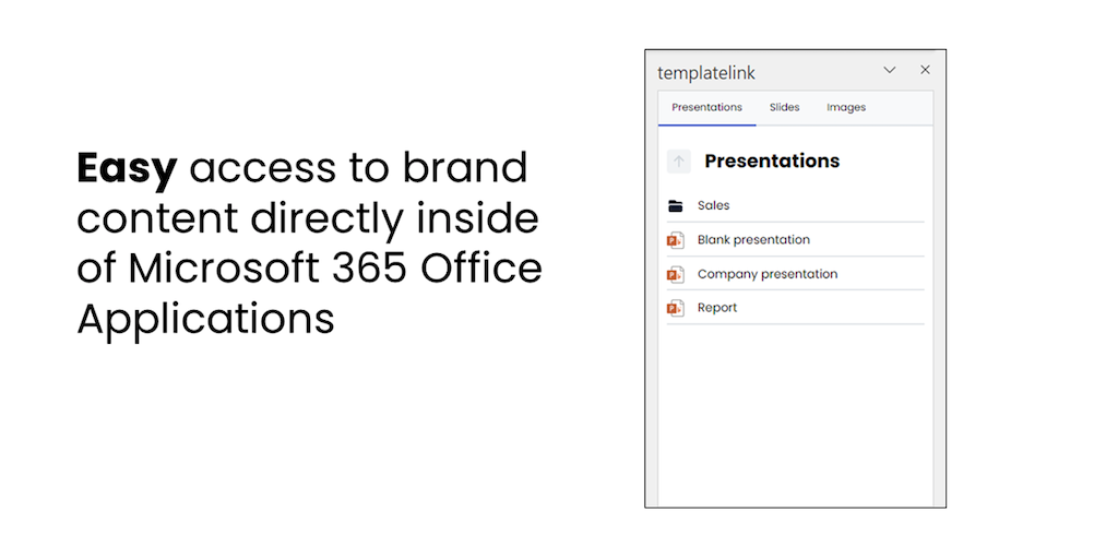 Easy access to correct and updated brand templates and assets. Lightweight add-in for Microsoft Office that works in PowerPoint, Word, and Excel.