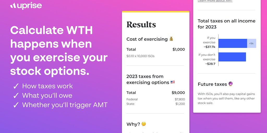 Uprise Best Stock Options Tax Calculator - Calc your startup stock options taxes (fed, state & AMT) | Product Hunt