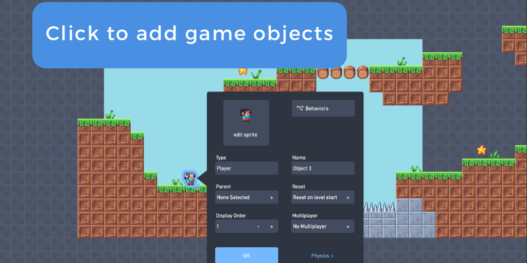 No-code game creation platform that runs in your browser. Anyone can be a game designer - Flowlab makes it easy to get started making your own games right now. Share your games on the web, or export a