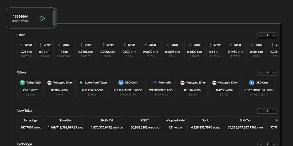 A analytics tools to visual token transfer in Ethereum. One block a time. Focus on different transactions type and follow transations by top NFT holder.