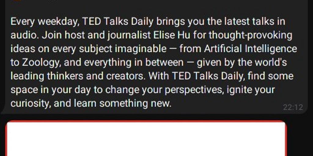The podcast bot. Search, subscribe and listen to podcasts in Telegram. The bot will send you new releases automatically if you have a subscription. You can see the file size before uploading, explore