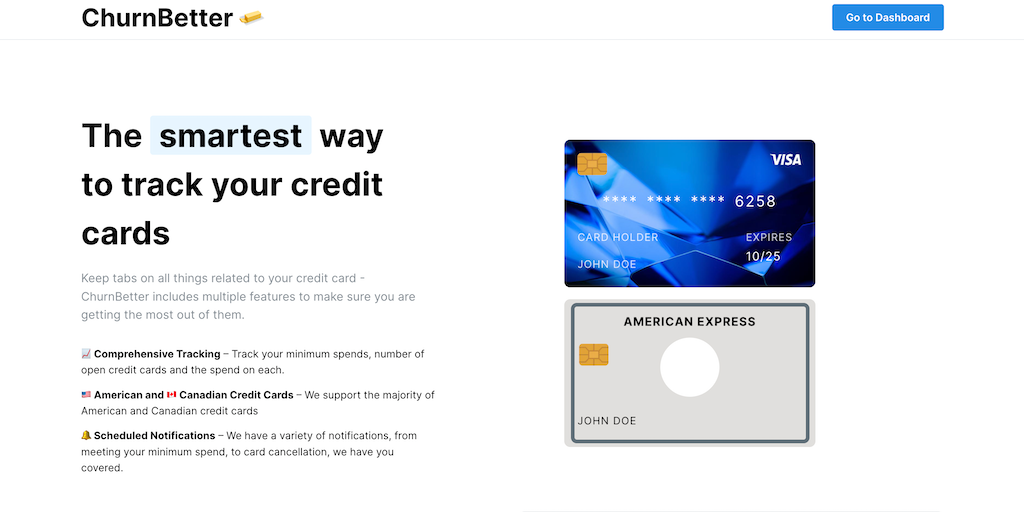 Do you track your credit cards? You may be missing out on cash value and points with just one! ChurnBetter was created to make credit card tracking simple and easy. With alerts to track minimum spend
