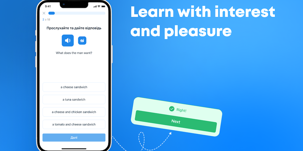Our application provides a wide range of language learning materials and lessons. It contains not only grammar and vocabulary lessons, but also practical exercises to train listening, reading and writ