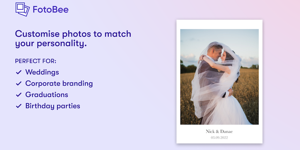 FotoBee is an online photo customisation tool that let's you easily customise your photos by adding text, fonts, logo, borders and colours that best your personal or corporate brand.