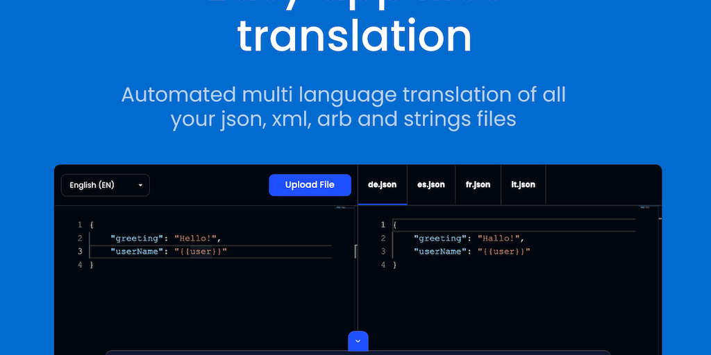 DevTranslate - Automated translation of json, xml, arb and strings files | Product Hunt