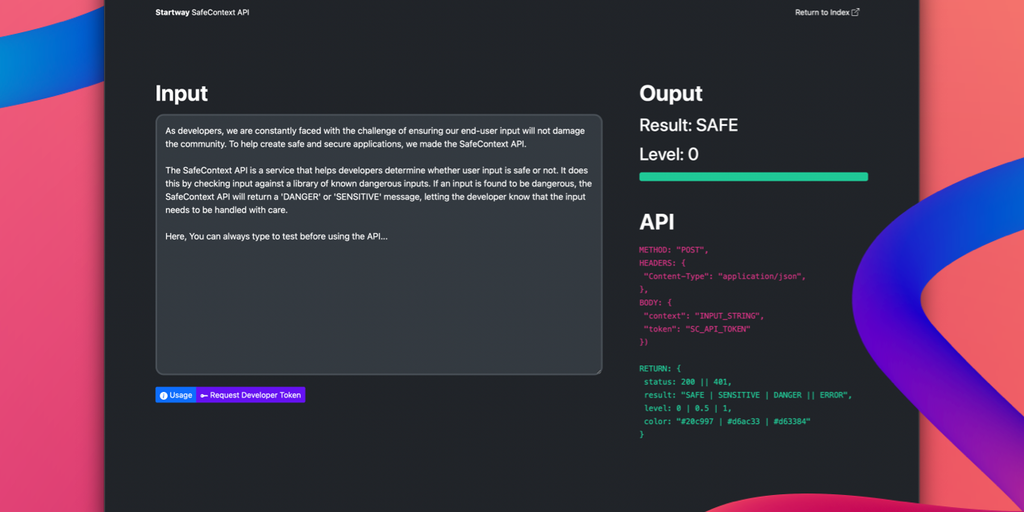 As developers, we are constantly challenged to ensure end-user input will not damage the community. To help create a safe and secure app, we made the SafeContext API, a service that allows developers
