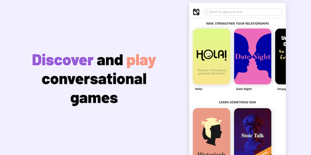 Anly - Discover & play creator-made conversational kits & games | Product Hunt