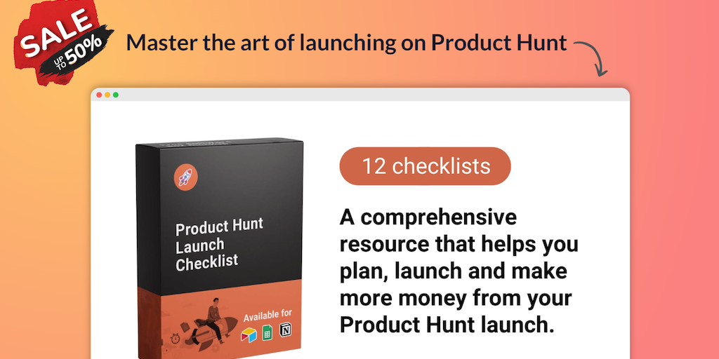 Master the art of launching on Product Hunt. Get this Product Hunt Launch Checklist — a collection of 200+ actionable tips divided into 12 checklists to prepare effectively for the Product Hunt launch