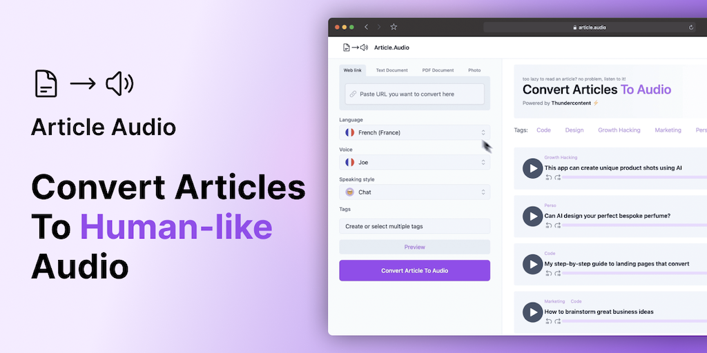Article Audio - Convert articles to human-like audio | Product Hunt