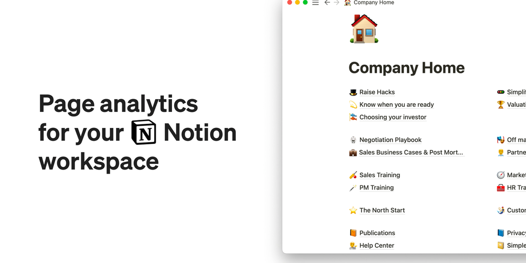 Notionlytics is a page analytics app for your Notion workspace! Embed tracking widgets into your Notion page and reveal info about the traffic that goes through it. 💯 Try it out! 👉 https://