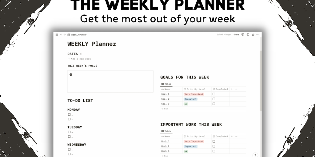 The Weekly Planner | Notion Template - Plan your week productively | Product Hunt