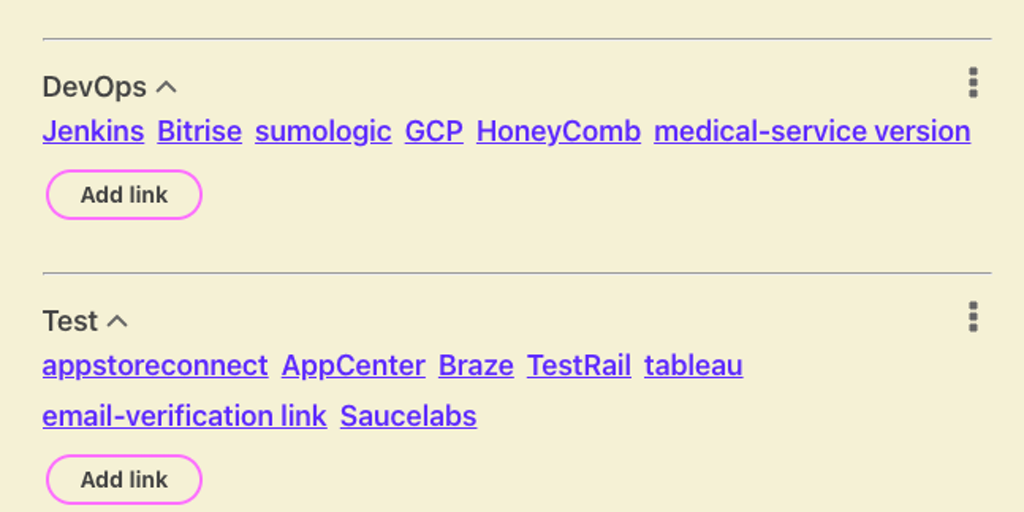 What‘s the page for.. Figma page of the design system? GitHub repo of the app? Confluence space of our team? Spreadsheet of our Q3 OKR? Meeting notes of that feature? Wasting time finding them? Save a