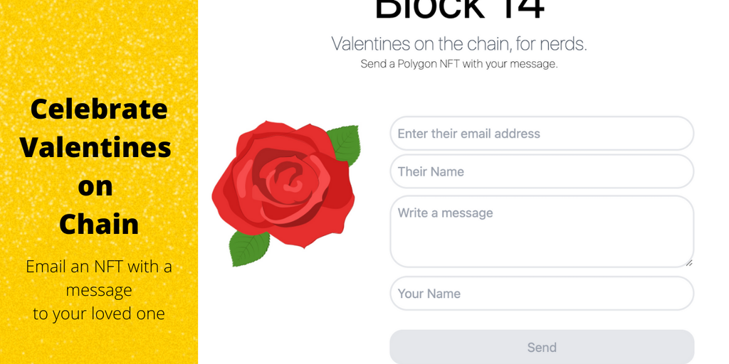 Nerdy Valentine allows you to airdrop an NFT to your loved one(s). Add a message to an image and send an NFT via email. The NFT will be airdropped to them, gasless and hassle-free. Built for fun and