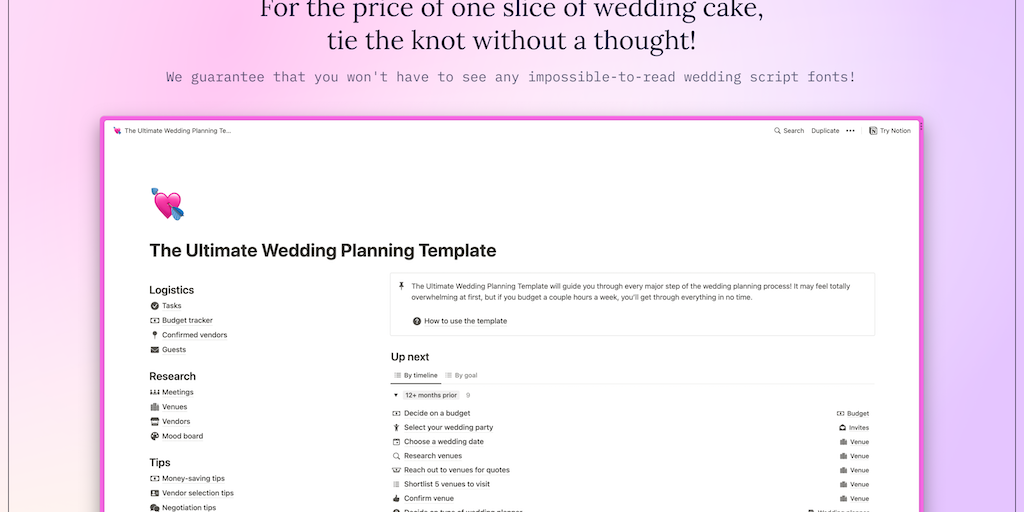 The Ultimate Wedding Planning Template - A stress-free-ish wedding planning guide powered by Notion | Product Hunt