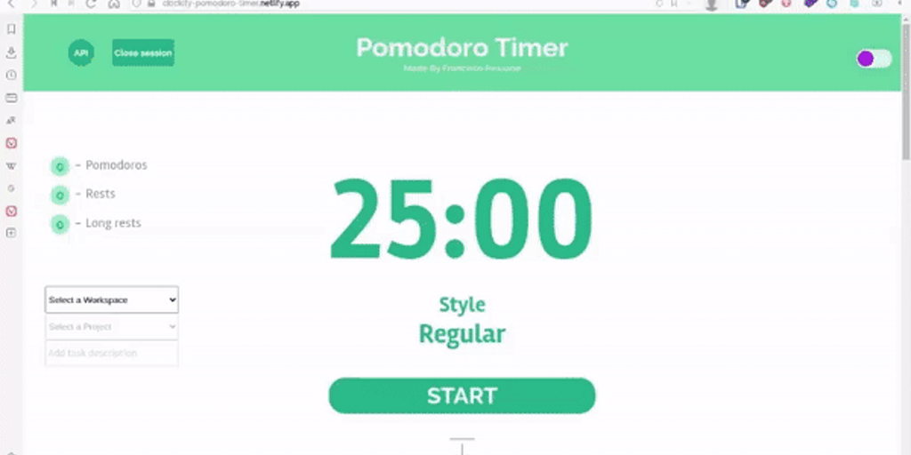 An Pomodoro Timer who allow to the client integrate their Clockify Profile for sync the worked hours in the Clockify service.