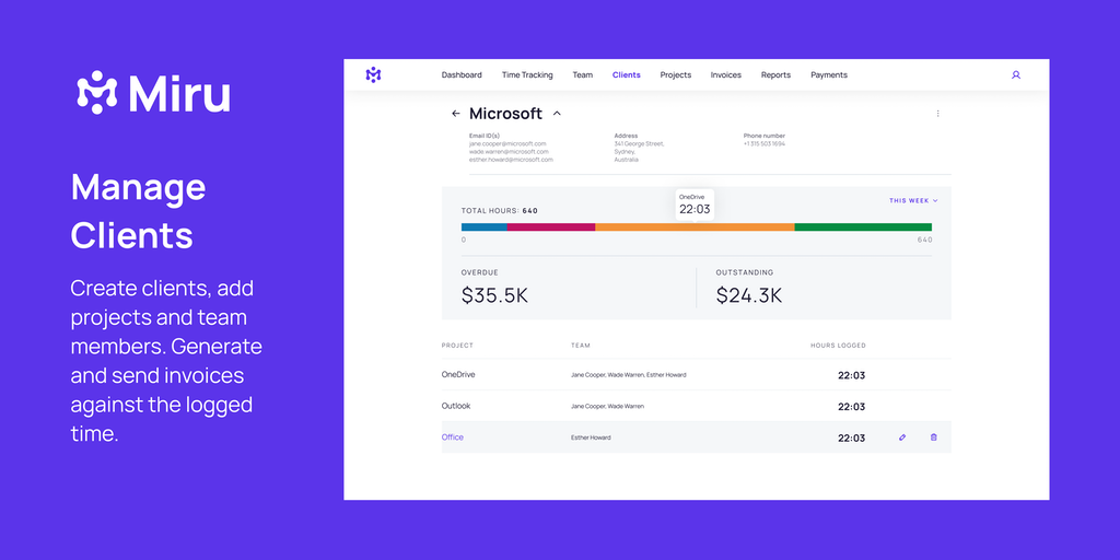 Track Your Team’s Time & Raise Client Invoice Instantly Miru is a one-stop platform used to manage and track time entries, capture billable moments, curate invoices, and integrate accounts, pay employ