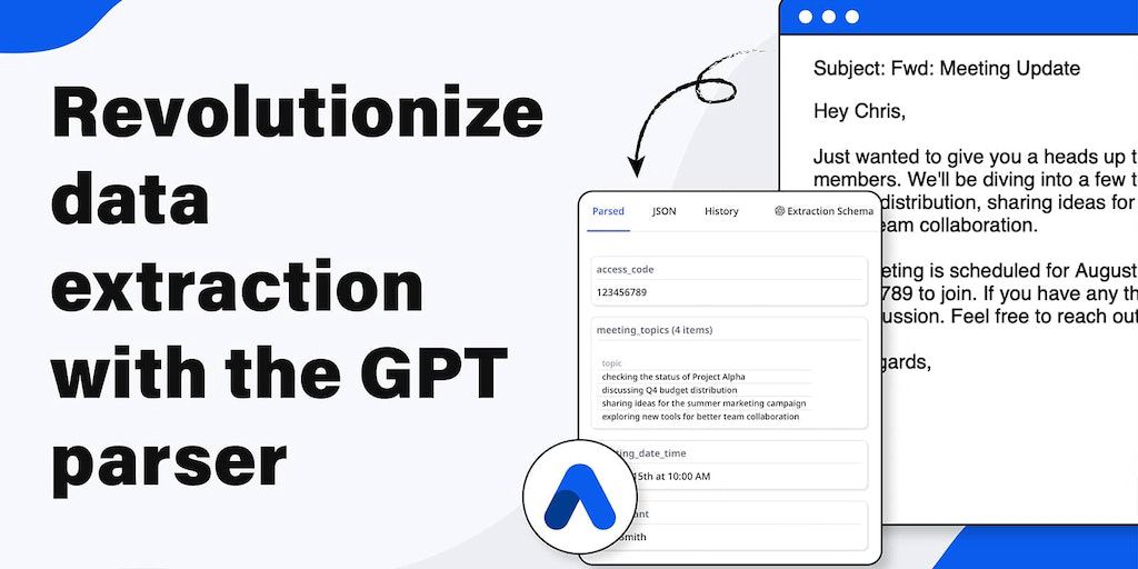 Revolutionize data extraction with the GPT-4 powered parser. Extract structured data from PDFs, emails, and documents. Export the parsed data in real time to Google Sheets, CRM, and over 5000 other ap