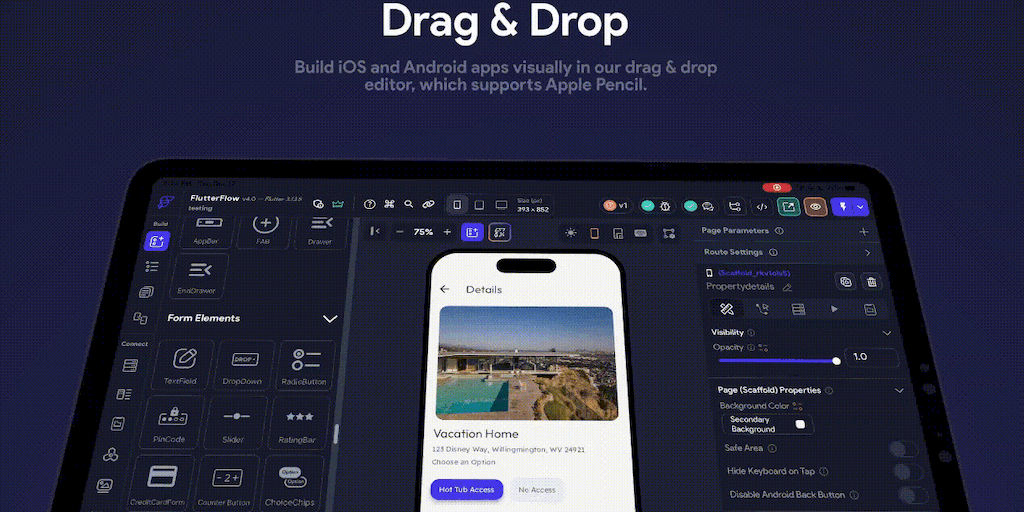 FlutterFlow for iPad: the only platform that lets you design, develop, & deploy apps directly from iPad! You can now build powerful, cross-platform apps on the go with Apple Pencil and our drag & drop