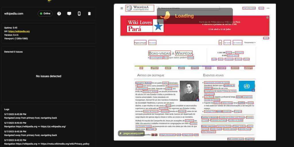 Page Canary is a website quality assurance bot. It can be set up in a single step, simply point it to your site and which it go! Page Canary will intelligently navigate your website and report issues
