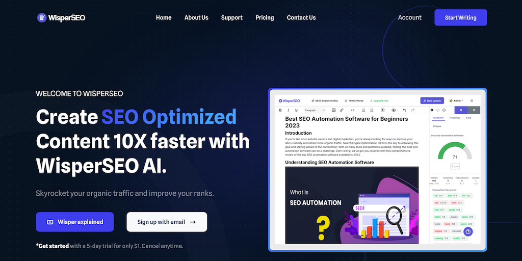 Elevate your content strategy with WisperSEO, your AI-powered companion for crafting engaging and SEO-optimized content. Analyze competitors, extract keywords, and craft content effortlessly.