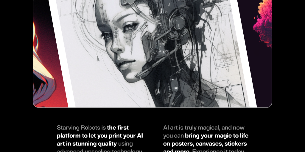 Starving Robots AI - Print your AI art in stunning quality on posters and more | Product Hunt