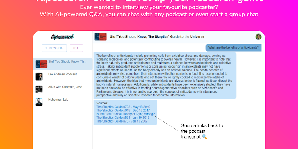 Tapesearch Chat - Find what was said in a podcast using AI powered search | Product Hunt