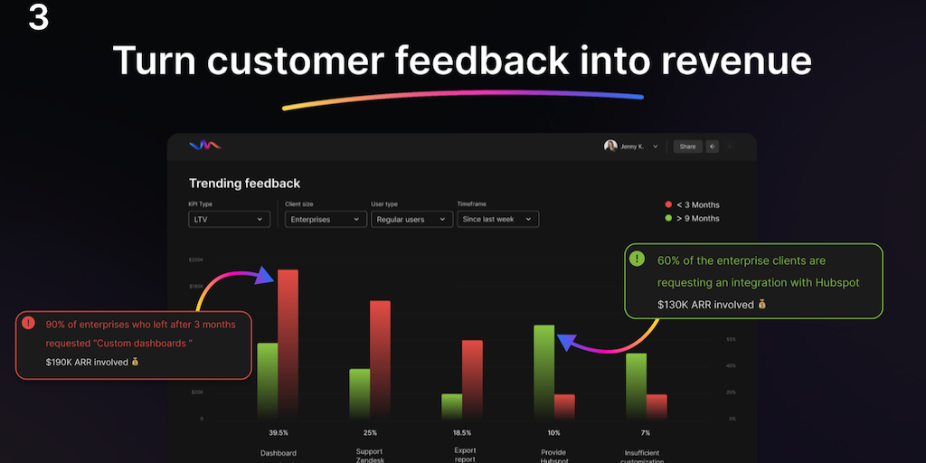 Automatically collect all your customer feedback from different sources and evaluate customer needs across various cohorts and categories. Simply turn product features to revenue.