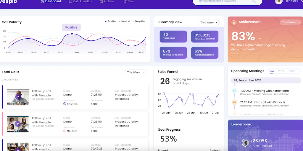 Vespio AI is a platform that Predict customer interest, Improves sales pitches & provides in-depth insights from meetings, as well as aids Sales reps during Live Sales meetings, Enables Managers to go