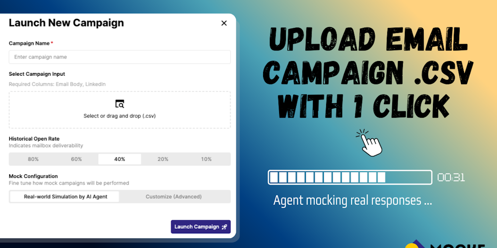 Mocke AI agent mocks running email campaigns. Get back results in 1 min, such as open, reply or unsubscribe. Mocke also reveals why each lead didn't open emails, reported spam or ignored. Unlock insig