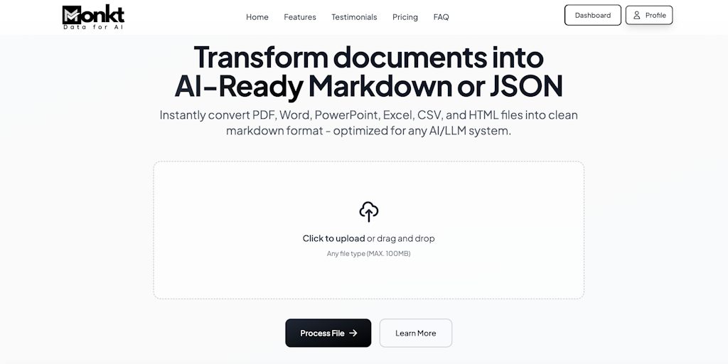 Monkt - Transform files and web pages into AI-ready Markdown or JSON | Product Hunt