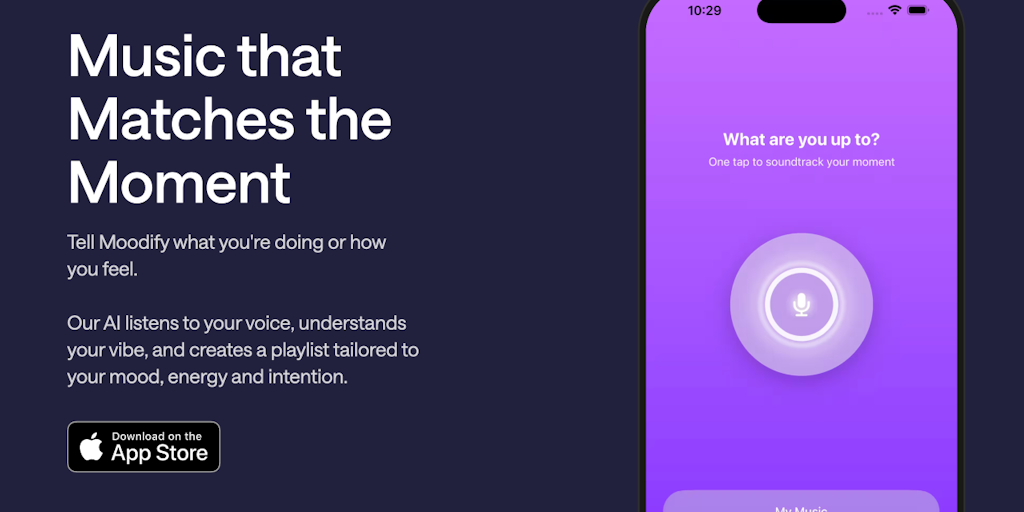 AI-powered music experience that understands your moment. Speak naturally, and Moodify analyzes your mood, energy, activity, and context to build the perfect playlist using Spotify and Apple Music.