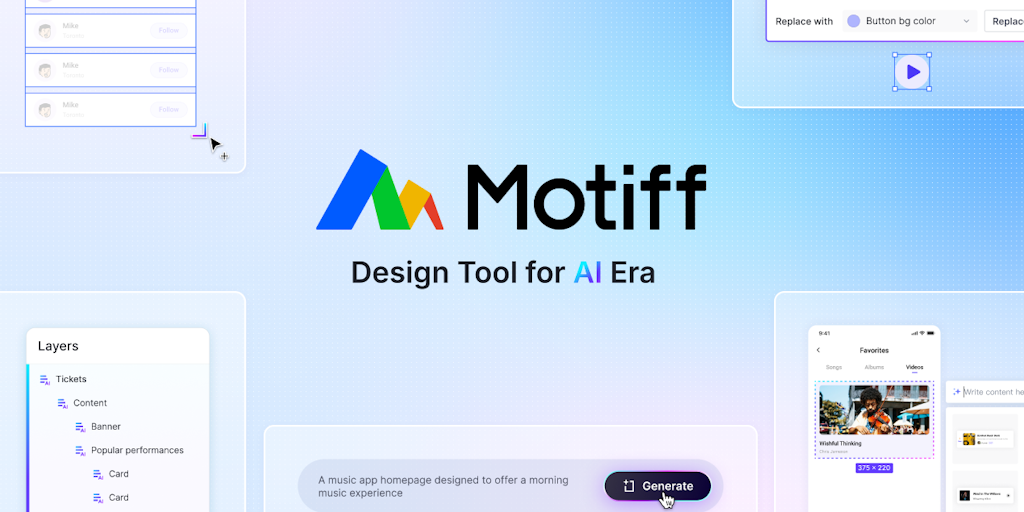 Welcome to Motiff! Motiff is revolutionizing the way designers collaborate with AI. Our platform, born with AI at its core, now offers an AI Toolbox, AI Design Systems features, and Motiff Lab. Boost