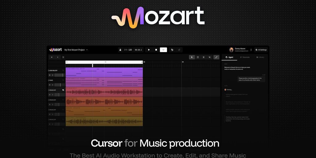 Mozart AI is a browser-based music creation platform that lets anyone create music using natural language and voice. Mozart AI gives the creator complete creative control and lets them turn ideas into