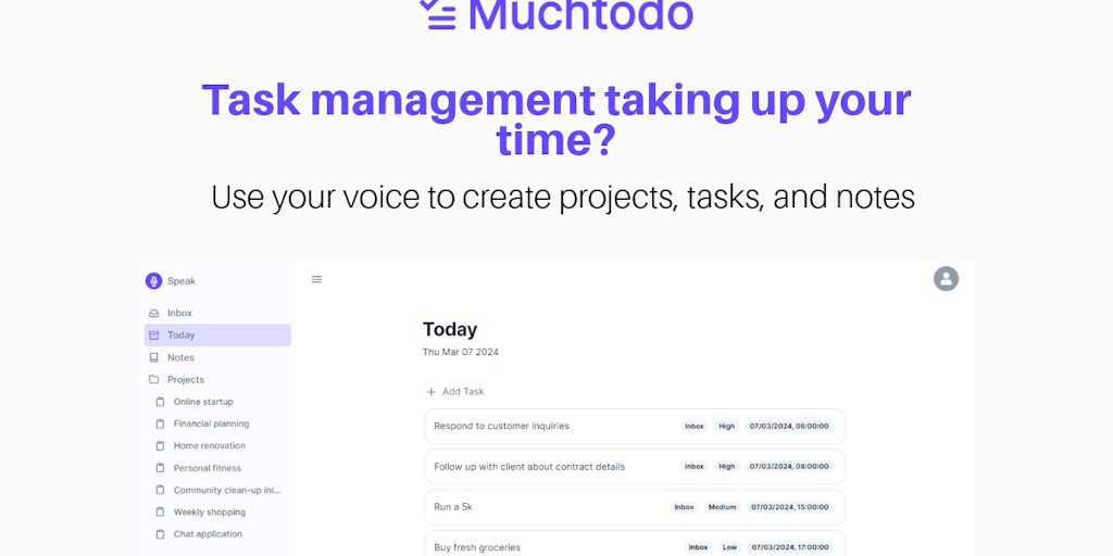 Muchtodo AI - Use your voice to create projects, tasks and notes | Product Hunt