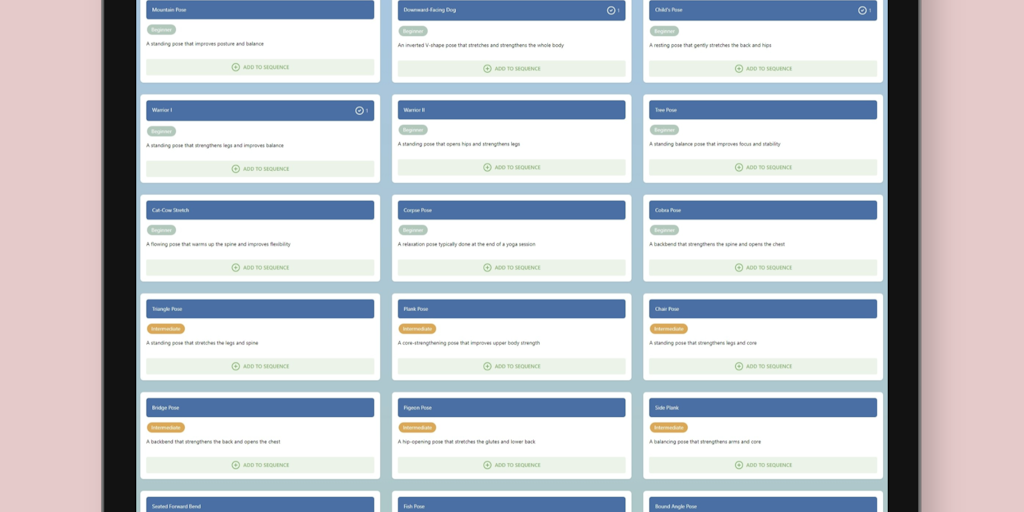Create, save, and organize flows. Spark creativity with intelligent, balanced sequences using our AI Yogi. Print ready sequences, seamlessly transition from app to studio. Detailed Pose Notes, add per