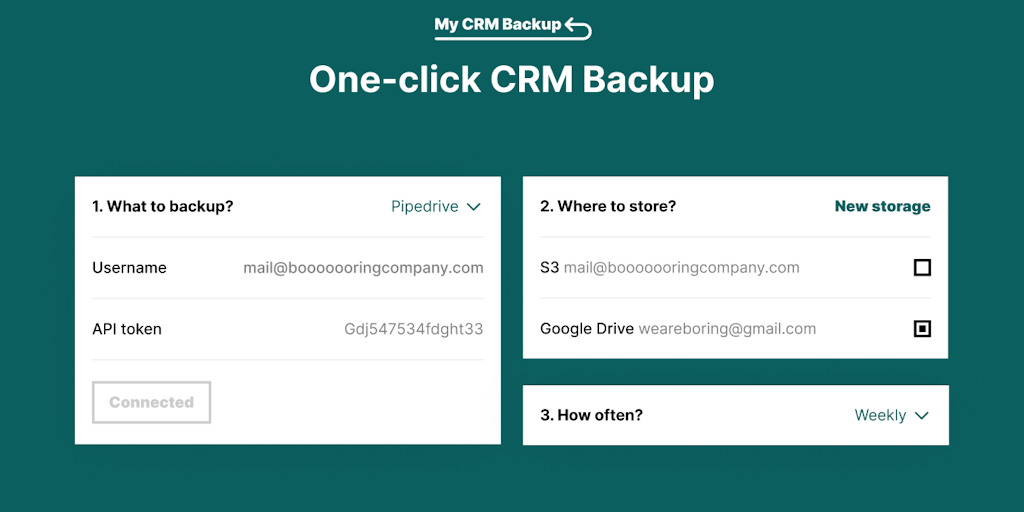 MyCRMBackup keeps your CRM data safe by automatically backing it up to your storage daily or weekly. You always get the latest version. It's easy to set up and works in the background. Get deals, lead