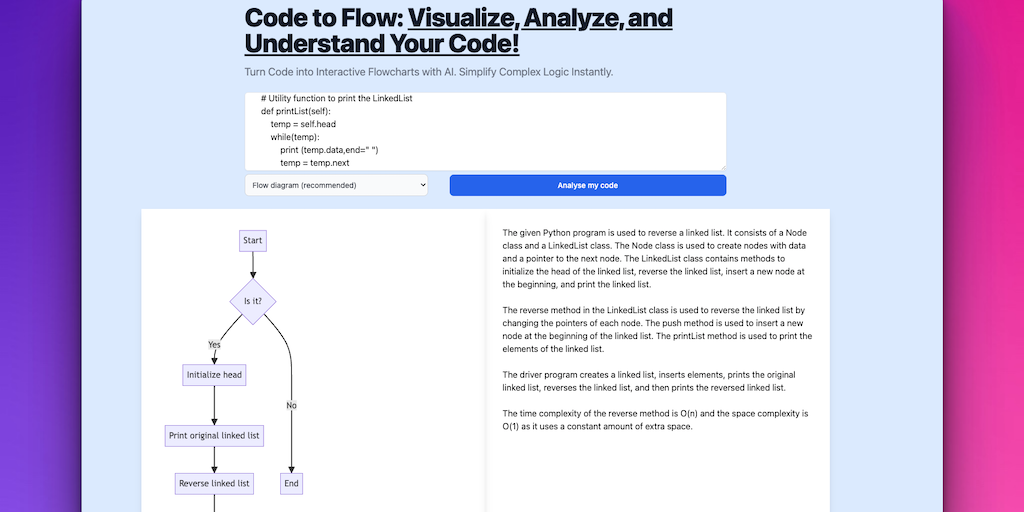 Code to Flow - Visualize, analyze & understand your code flow | Product Hunt
