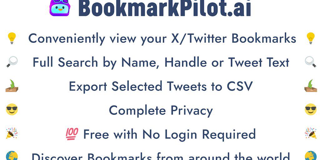 BookmarkPilot - Free tool to Search and Export your X/Twitter Bookmarks | Product Hunt