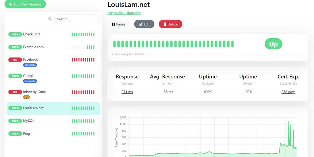 UptimeKuma is an all-in-one solution for monitoring everything from HTTP(s), TCP, keywords, JSON queries, DNS, SSL... Enjoy multiple status pages and 90+ notification services like Telegram, Slack! My