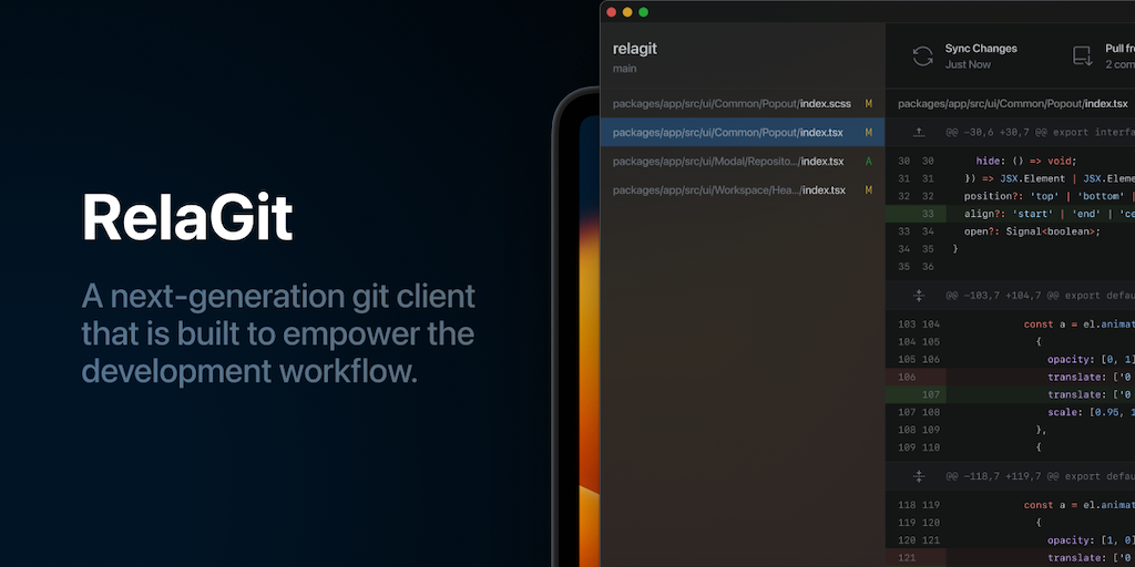 RelaGit is a beautiful next-generation git client that empowers users to extend their workflows and achieve maximum efficiency.