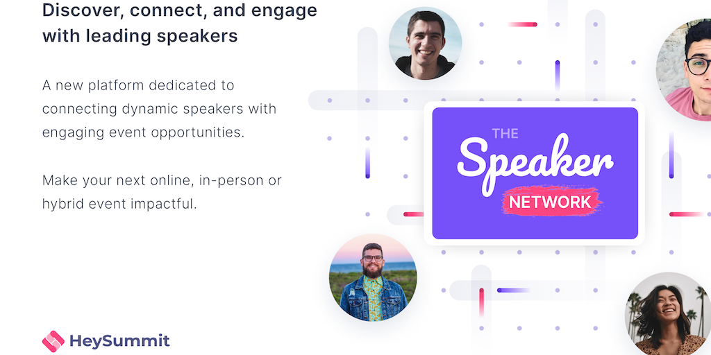 Announcing the HeySummit Speaker Network. A new way to discover, connect, and engage with leading speakers for your next virtual, in-person, or hybrid event.