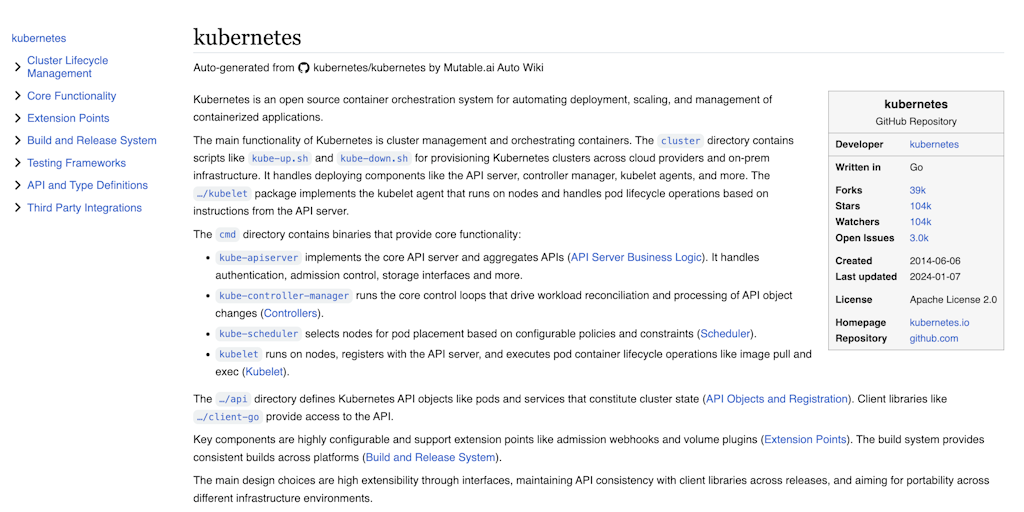 Mutable.ai's Auto Wiki transforms your codebase into Wikipedia style articles using AI. Its powerful citations system link citations to code with clickable references to each line of code. Here's an e