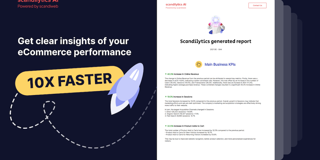 A decade of Fortune 500 analytics expertise for just $29.99/month. Get automated, AI-generated reports straight to your inbox, making your eCommerce performance quick & easy to understand.