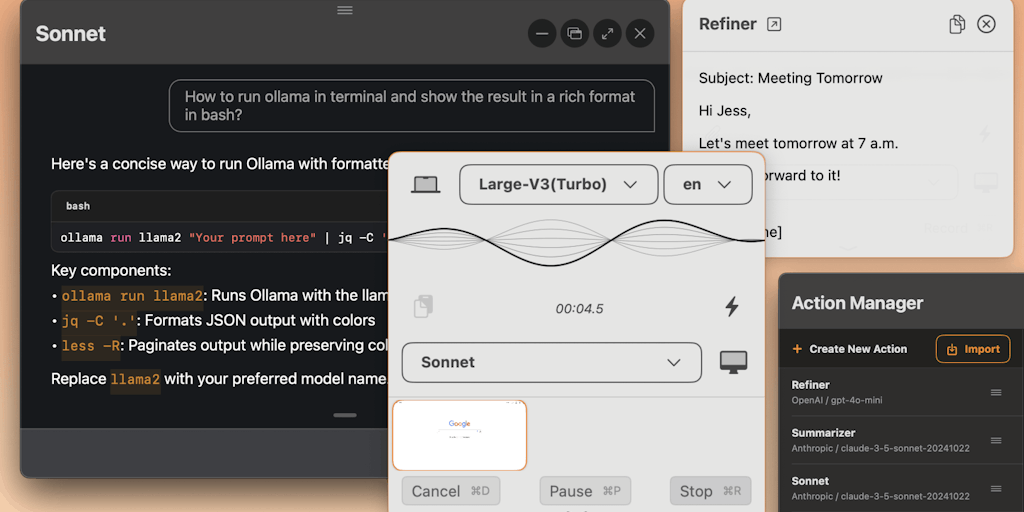 Najva is a free macOS app that combines offline speech recognition with AI processing. Transform voice to intelligent text, add context from selected text, capture visuals, and seamlessly integrate wi